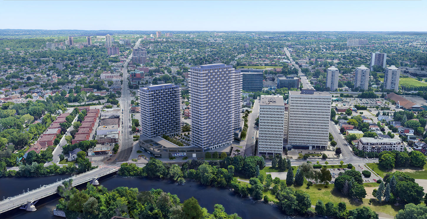 Riverain District consists of three residential towers and ground floor retail space at the intersection of Montgomery Street and Selkirk Street. The site anchors the ongoing redevelopment of Montreal Rd and the Vanier community.